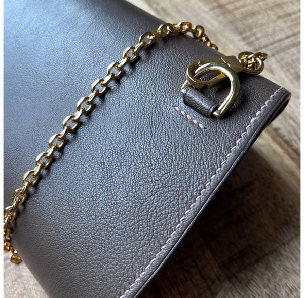 Istnieje możliwość wypięcia łańcuszka, co pozwala nam na jej użycie jako kopertówki do dłoni. Torebka została tak zaprojektowana, aby tylne zaczepy nie kolidowały wizualnie z całością.